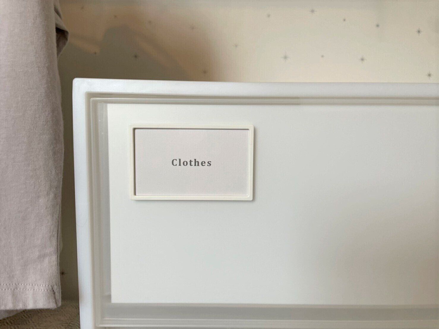 中身が見えない状態にした場合、ぜひやっていただきたいのが「ラベリング」です。「中に何が入っているか」をラベリングすることで、衣類を定位置に戻しやすくなります。