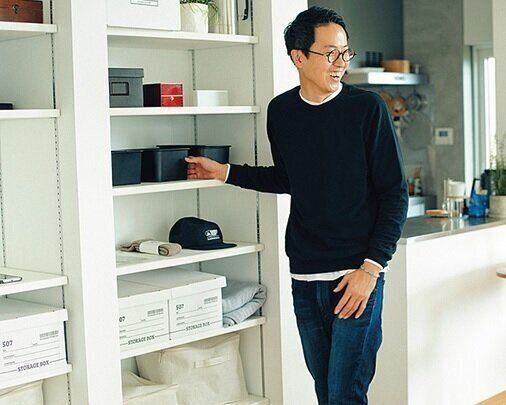 夫は帰宅したらすぐに財布や時計、仕事道具を出す習慣があります。そこでリビングの棚にボックスを設置。夫が帰ってすぐに立ったまましまえる高さに収納場所をつくったら、散らからず忘れ物もなくなりました。