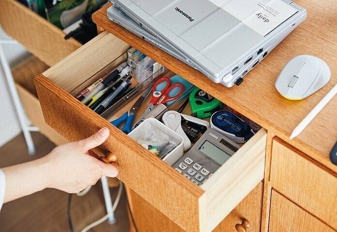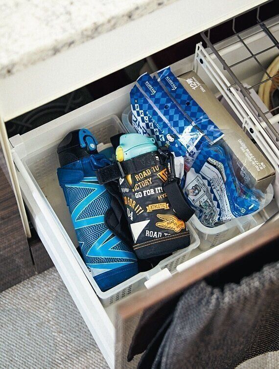 わざわざ「しまう」のはめんどうなのが当たり前。見えるところへ「置くだけ」にすると、自然な流れで片づけられるように。フタをしない、扉はいらない、が基本です!ヒントは小学生でもできるしまい方です。