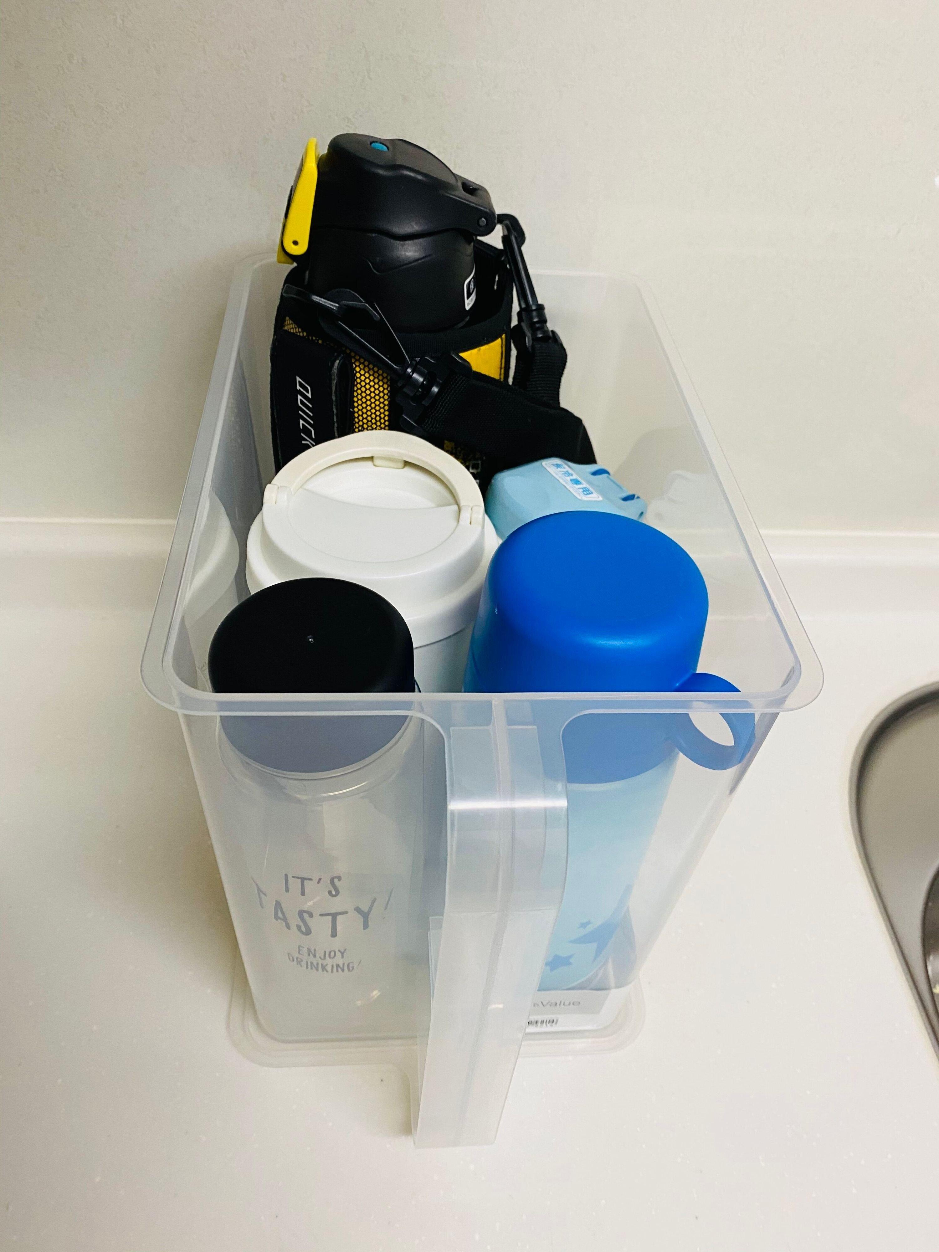 自分の目線より高い場所に入れたい時は取っ手付きのケースが便利です。