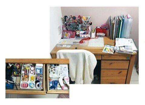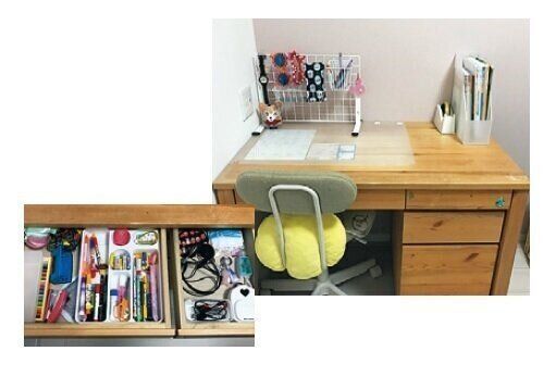 「机を片づけたら自分でも驚くほど物があって、45Lのゴミ袋がパンパンに!スッキリ、集中して勉強できる机になってうれしい。このまま維持できるように頑張りま~す!」。