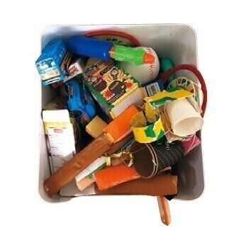 次は片づけたい物を「何にしまうか」考えて、入れ物を自由に選んでね。片づけたい物を入れてあふれちゃったら、一度取り出して「使う物(好き)グループ」「使わない物(あげる)グループ」に分けよう。そして使う物(好きな物)だけ入れ物に戻そう。片づけやすくなって気持ちいいよ!