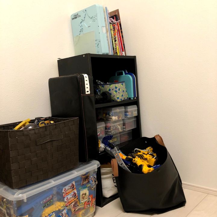 ワンオペ育児だと、ちょっと家事したいときにおもちゃが最強の味方になってくれます。おもちゃに集中して遊んでくれているときは家事がはかどる!うちの場合は男の子兄弟なので、戦隊モノの武器やプラレールなど、かさばるものが盛りだくさんです。