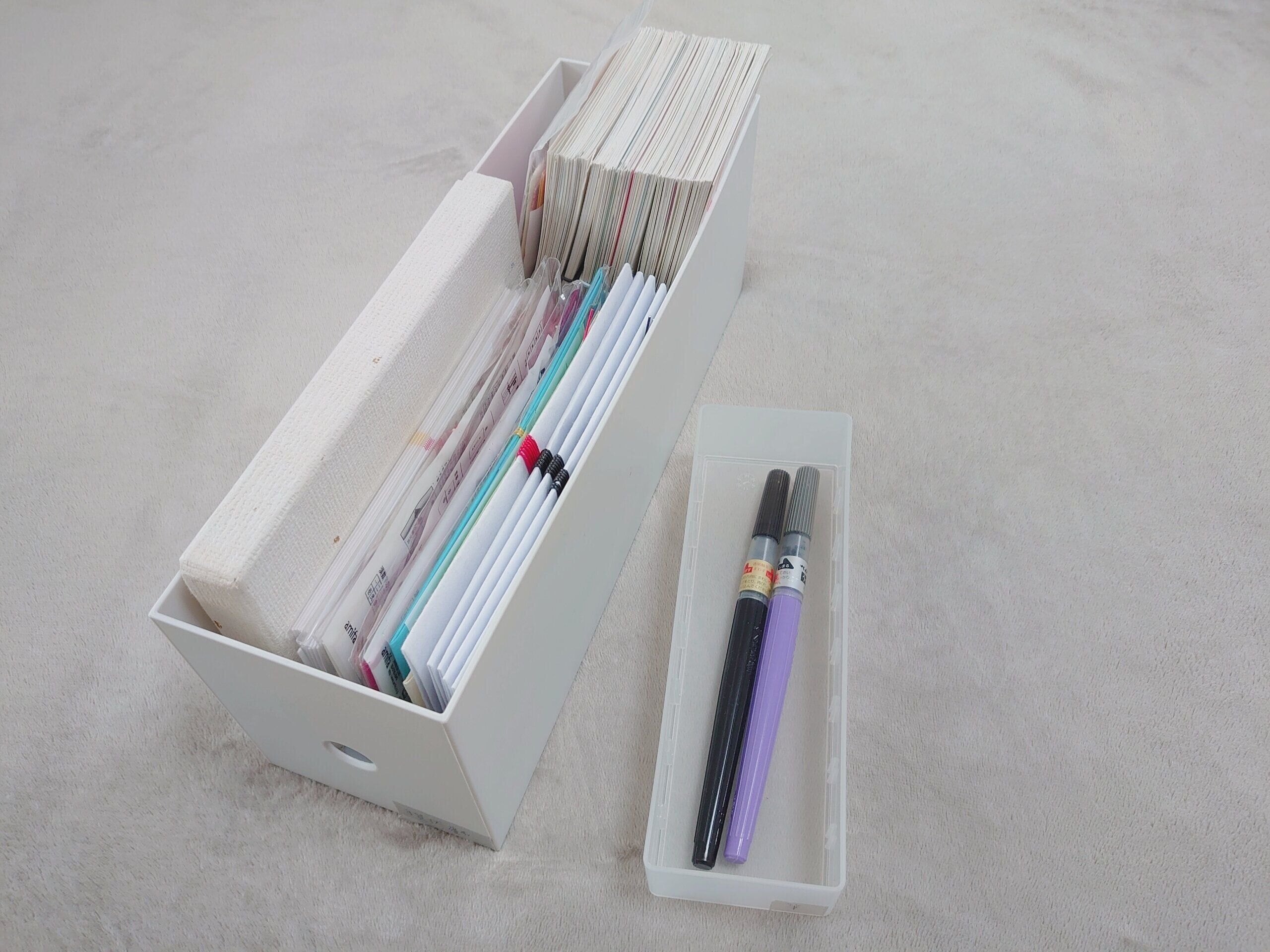 筆は私以外も使うかもしれないので、筆(濃墨と薄墨の2本)だけ入ったケースを作ることでガサガサと筆を探さなくてもいいようにしています。