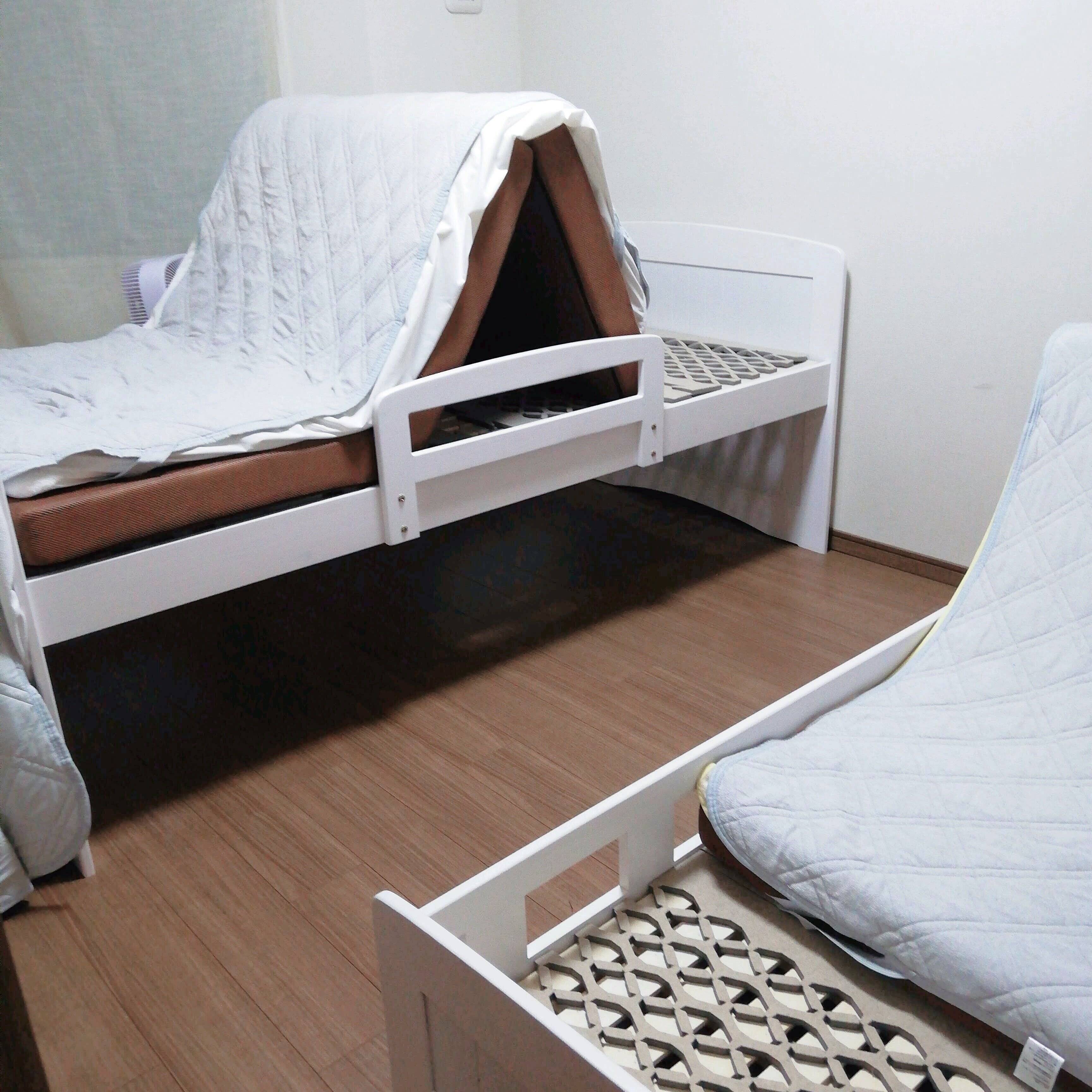 加えて家族も増えたことでこまめな布団の上げ下げや布団干しが億劫になり、ベッドに移行することにしました。