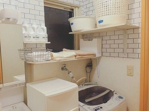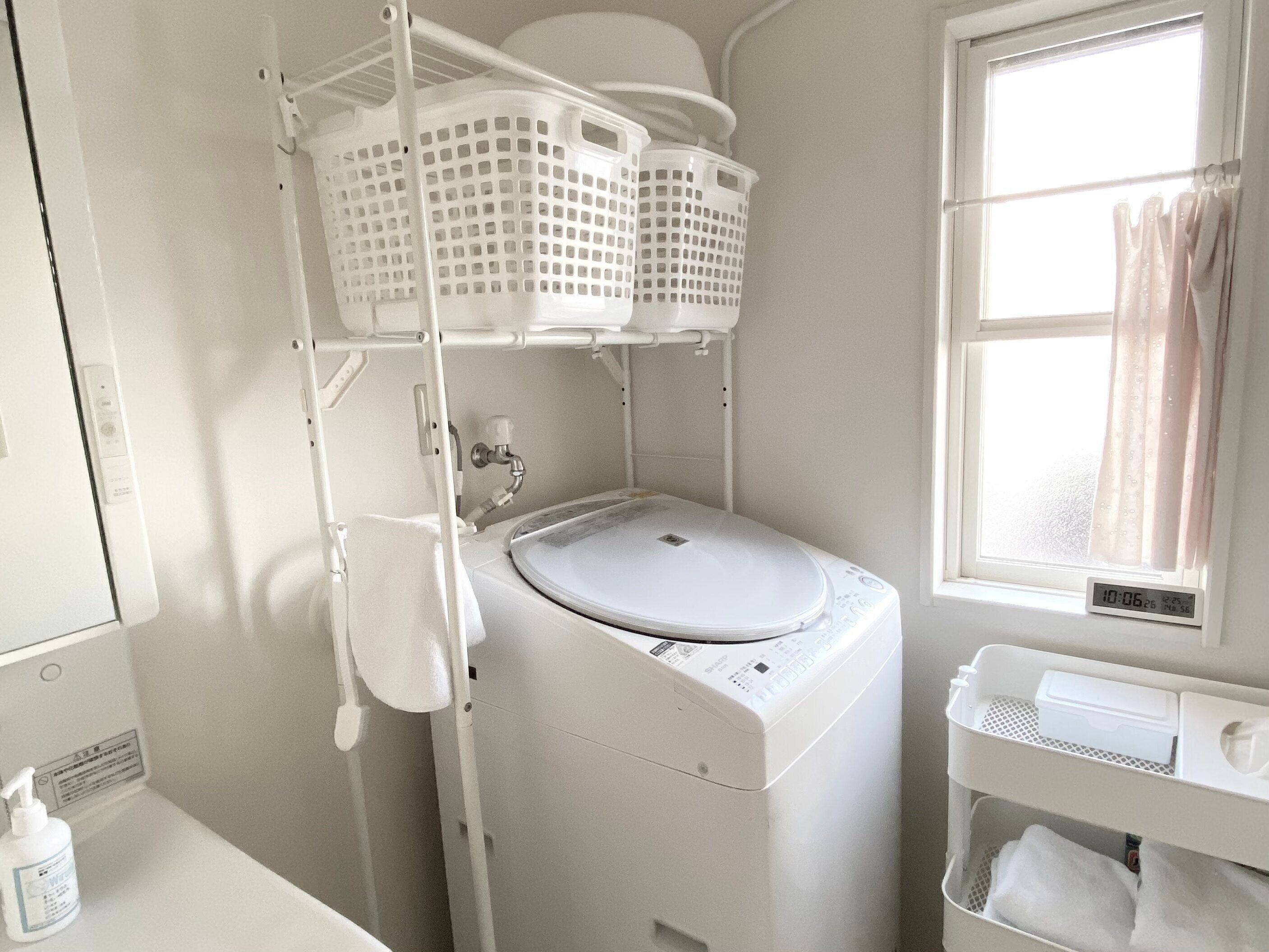 洗濯機の上は使い方によって有効活用できるスペースです。「洗濯機上にラックを設置」して、収納スペースを増やしてみましょう。