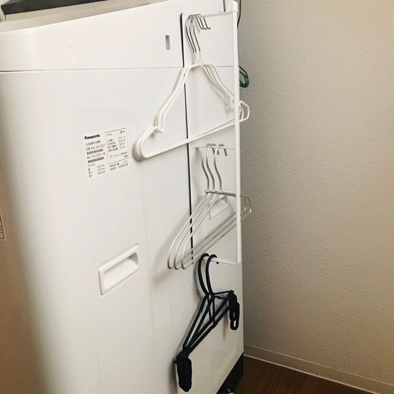 洗濯機の側面などに簡単にハンガー収納ラックを取りつけることができます。かさばるハンガー類をコンパクトに収納して、取り出しやすく戻しやすいのが嬉しいポイントです。