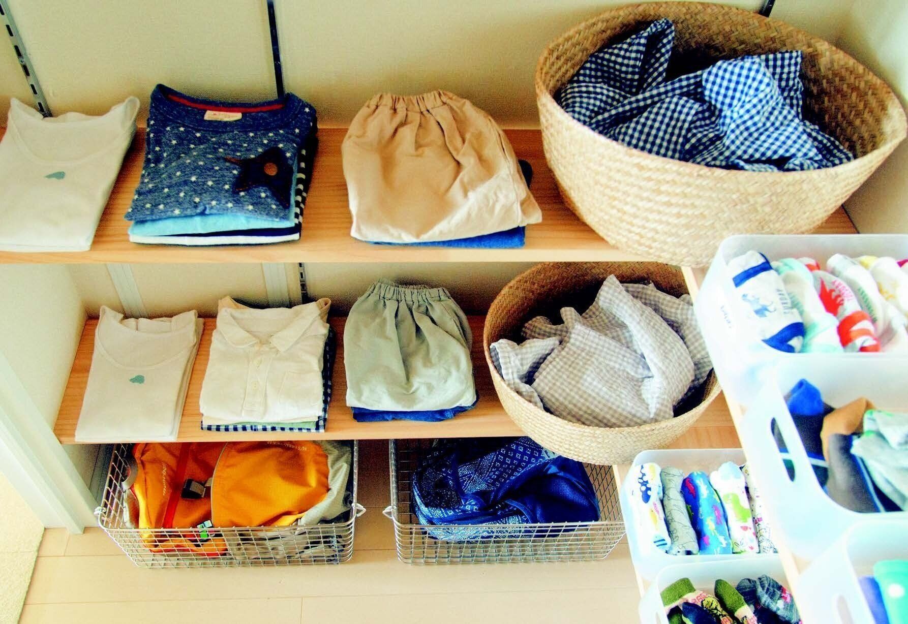 ここでキーワードとなるのが、「夫目線」や「子ども目線」の収納方法です。家族にわかりやすい収納にするには、夫や子どもの日々の行動パターン、物を使うシーンなどを観察することが重要。夫がソファでゴロゴロするときに使う小物は、ソファの近くに専用置き場をつくったり、脱ぎ散らかす服は起床時や帰宅後の動線上に置き場をつくるのが有効です。