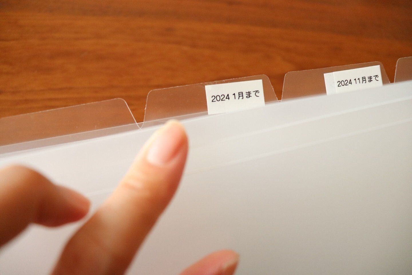 たとえば水道光熱費などの領収書を電気代やガス代、水道代と分けて蛇腹ファイルに整理すると見直しやすくなります。またファイルにインデックスをつくっておけば、一目でわかるようになるでしょう。
