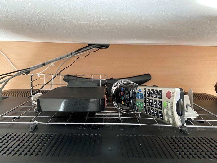 テレビの裏側に結束バンドなどでワイヤーネットを取りつけ、そこにコード類を束ねて収納することで、表側からはコードが見えなくなります。コードが見えていないだけで、部屋がスッキリと見えるためおすすめです。
