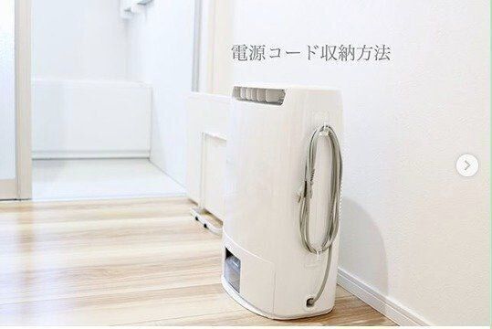 最初にご紹介するのは、加湿器や扇風機、掃除機などのコード収納について知りたい方におすすめの、粘着フックを使った収納です。