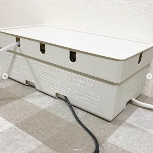 100円ショップでも売られている蓋つきの収納ケースは、延長コードや充電器を隠してくれる良いアイテムです。