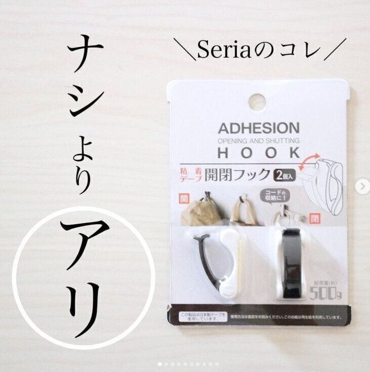 粘着フックと同じように、電化製品や机の脚などに貼りつけて使用するのが開閉フックです。