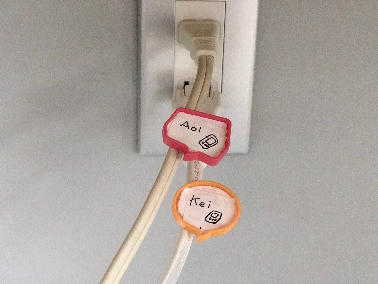 同じようなコードをまとめて収納する際に、家族の名前や電子機器の名称を書いておくことで、一目で判別できるようになります。特に家族みんなが持っている携帯の充電器や、キッチン家電に使用するのがおすすめでしょう。