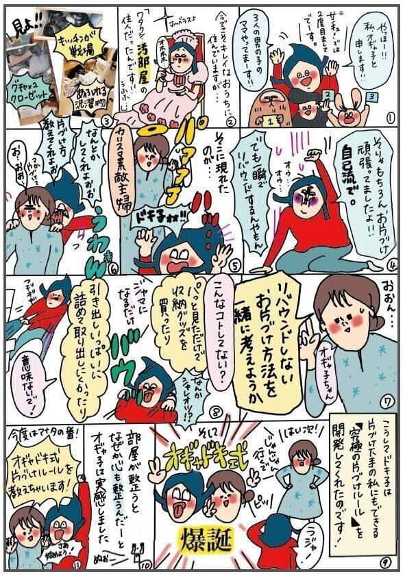 「片づけにルールがあるなんて知らなかった」とオギャ子。そんな彼女が収納上手なドキ子に導かれ、見事片づけられる人に!だれでも片づけられるようになる「オギャドキ式」片づけルールをご紹介!