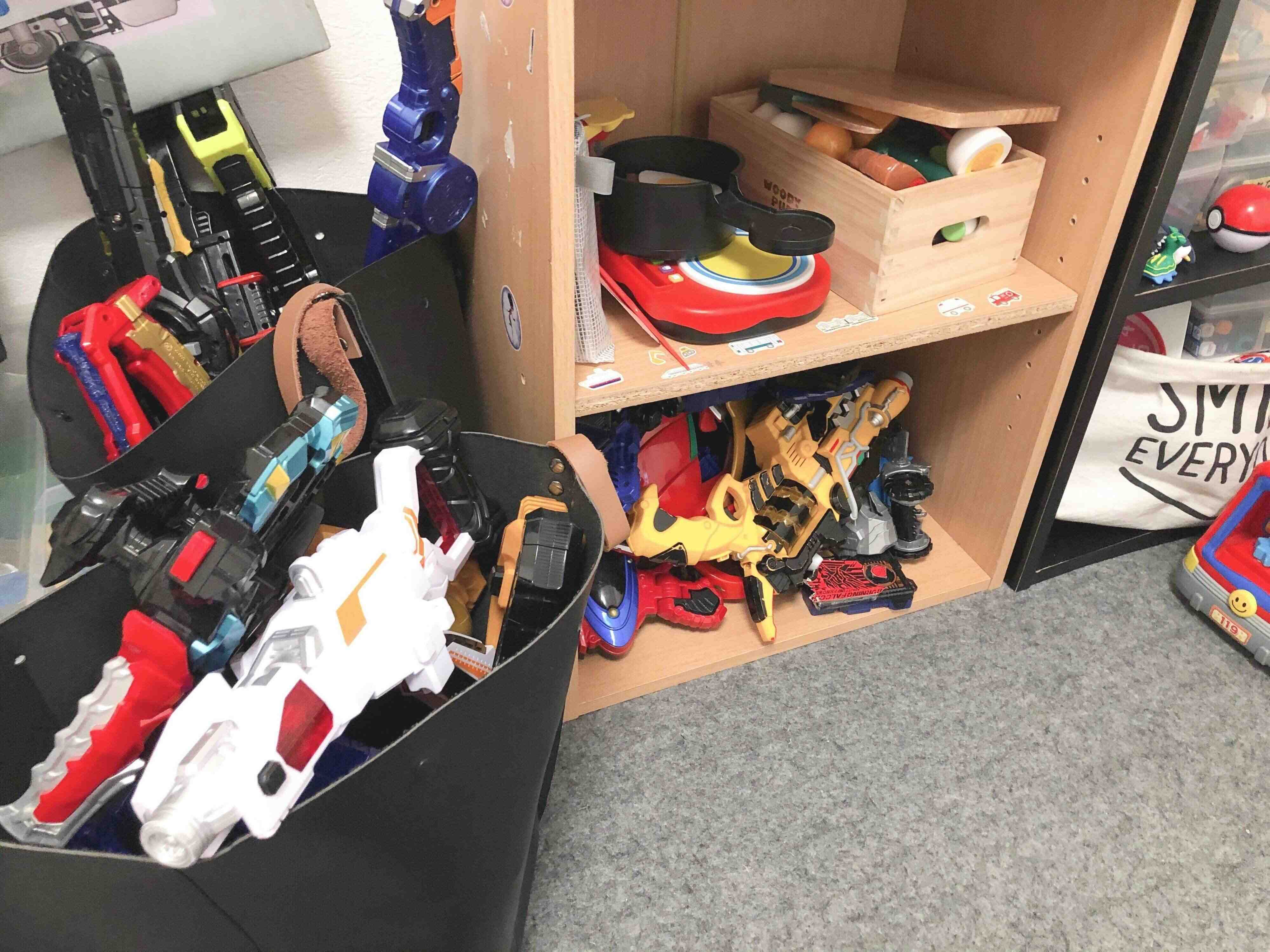 おもちゃを入れる棚からおもちゃがあふれ出してきたから、そろそろいらなくなったものがないか見てみてねと伝えます。