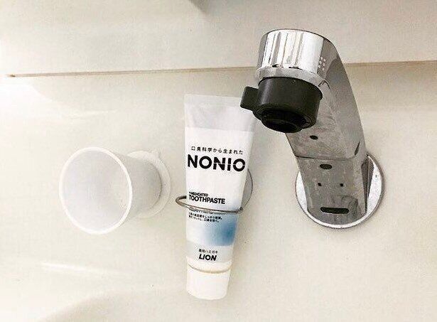歯磨き粉を吊るす