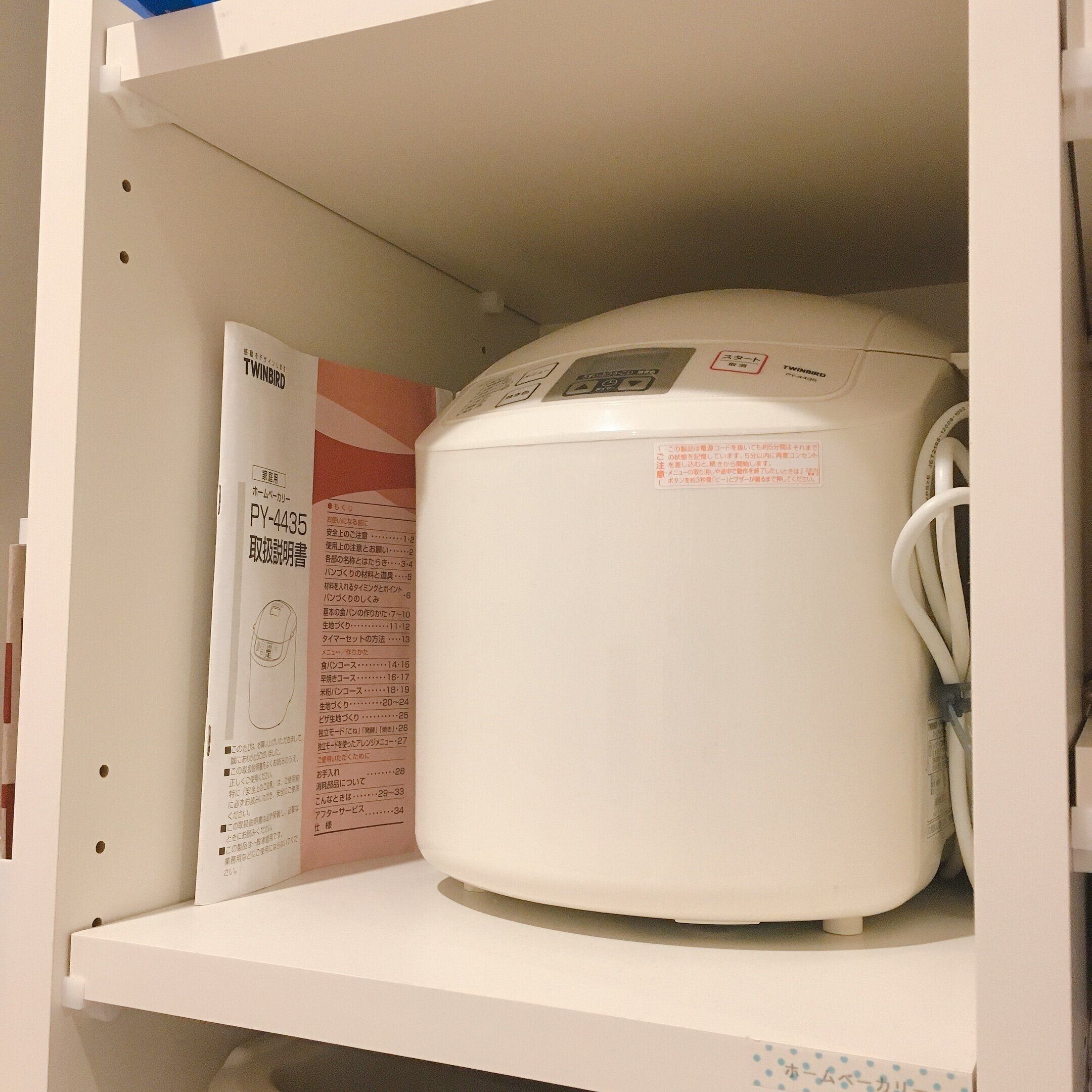 ホームベーカリーもパンの作り方を見たいので、ホームベーカリーと一緒に置いています。