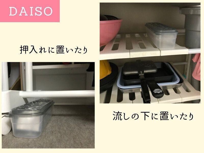 シンク下や洗面所の開き戸の中にも置いています