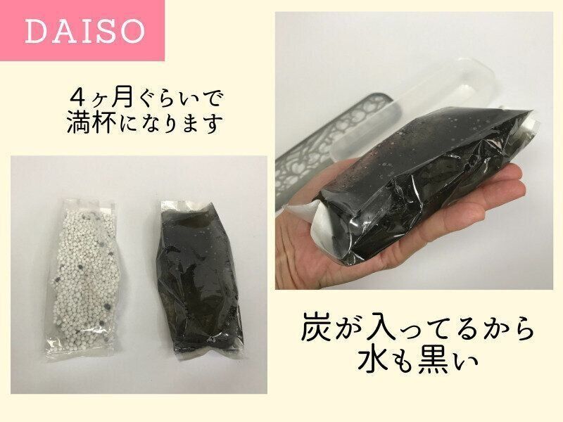 DAISOの商品は溜まった水を捨てれば縦長の袋状のゴミが出るだけで、ゴミもかさ張らないので、環境にやさしい設計も気に入っています。