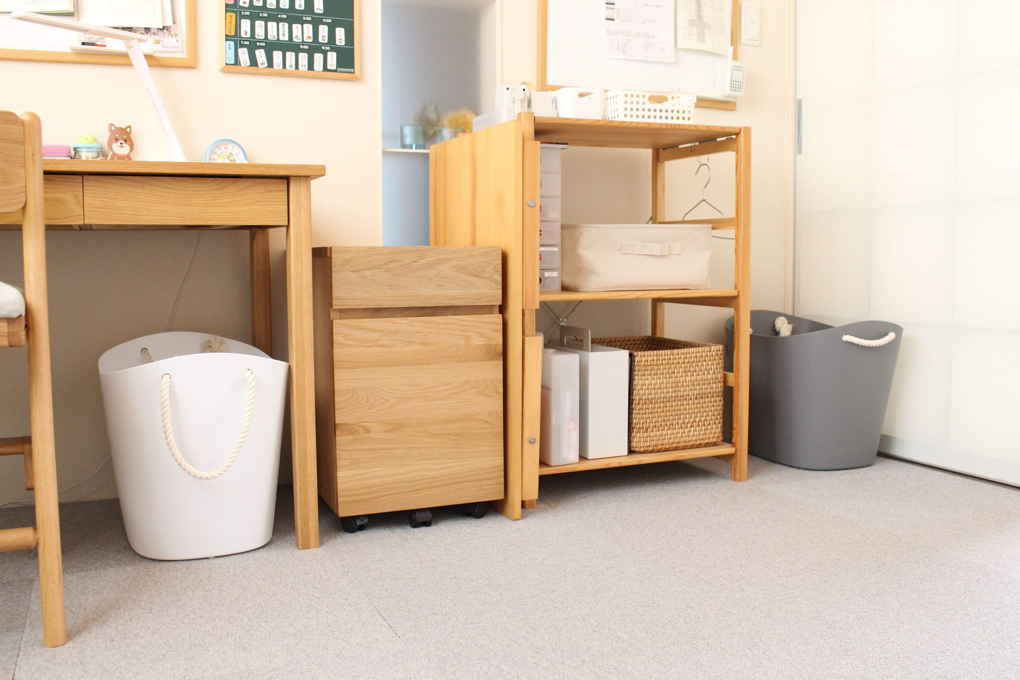 こちらの収納をとりいれてから、「散らからない」だけではなく、子ども達の朝の支度が、劇的に早くなるという嬉しい変化もありました。
