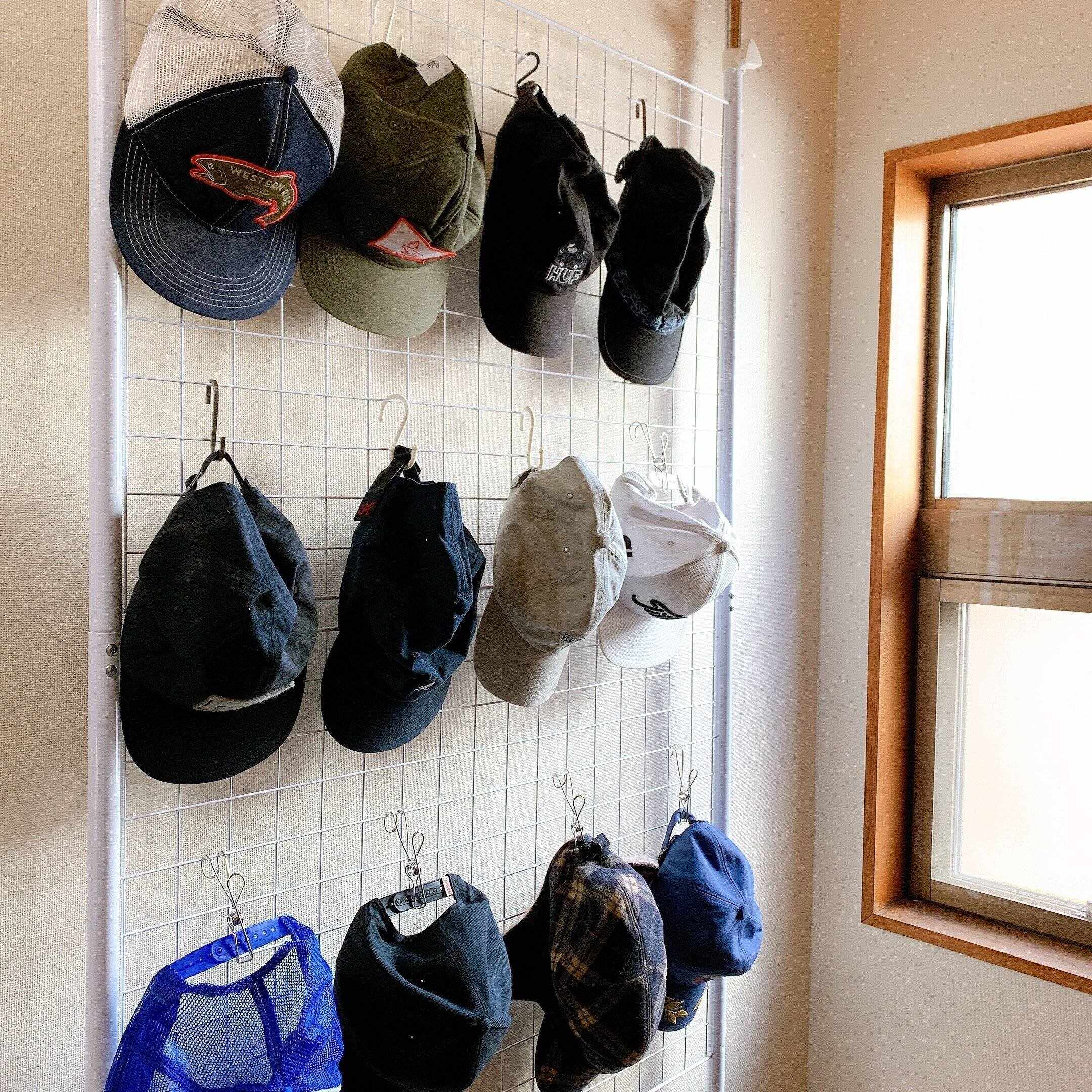 夫も私も帽子が好きで、帽子の収納に長年悩んできました。色々と試行錯誤しましたが、やっと落ち着いたのがこの方法です。