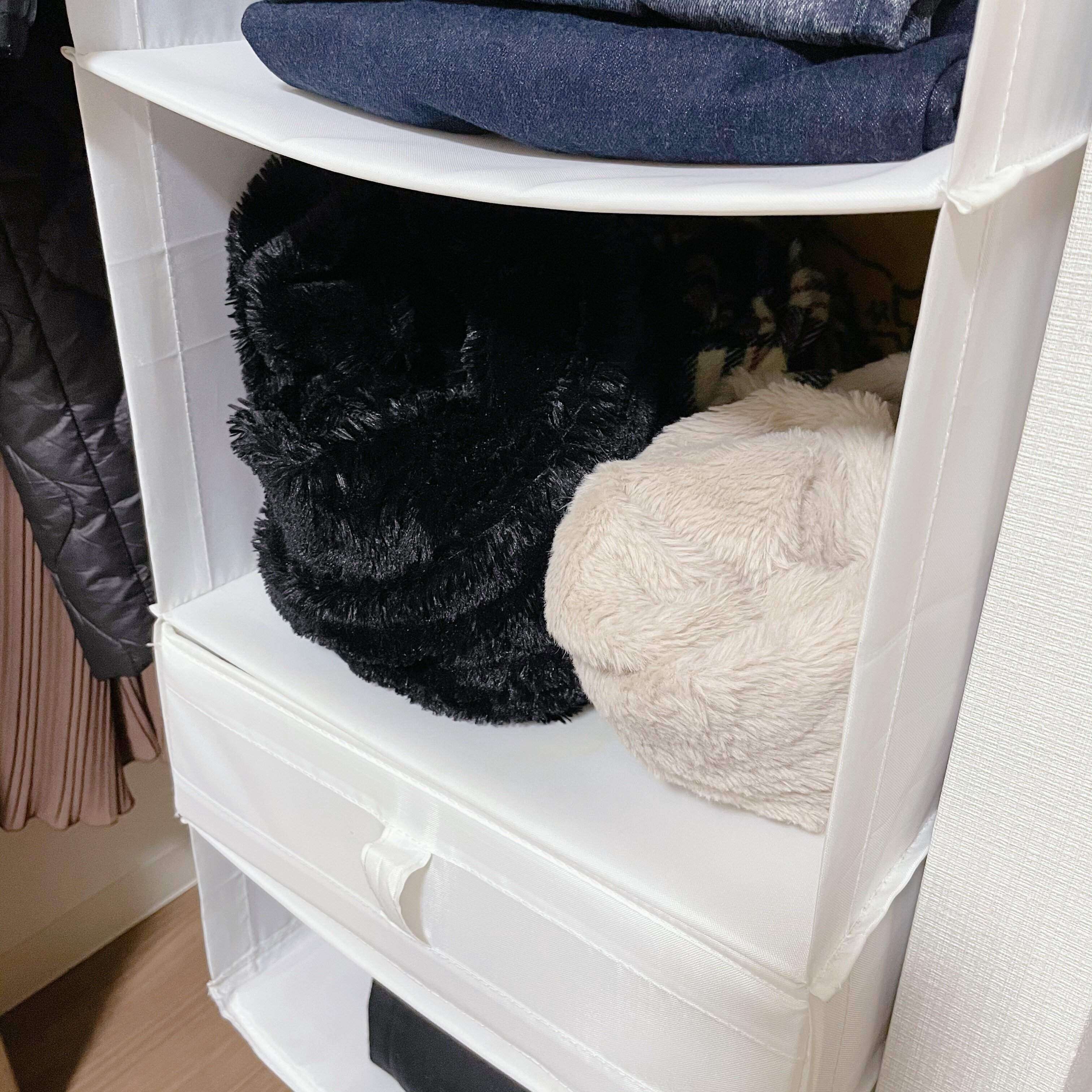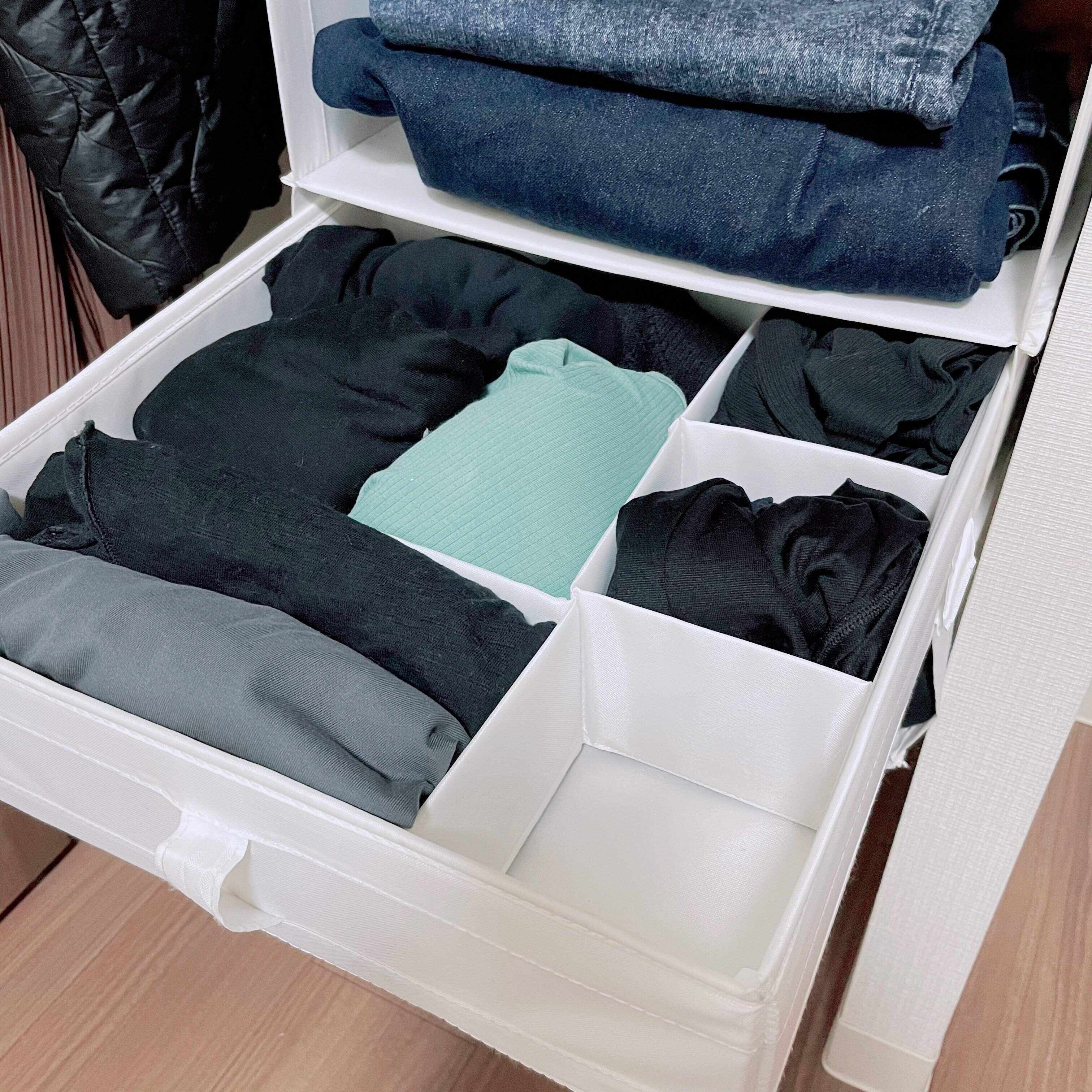 今回の見直しで、ボトムス3着とストール2つを処分したことで、さらに余裕をもって収納できることができました。