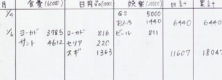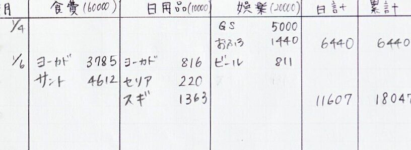 「細かい費目分けは記入も集計も時間がかかってムダと気づき、記入するのは、食費・日用品費・娯楽費の使用額と累計額だけに。パッとひと目でわかり、予算を意識しやすくなりました」。