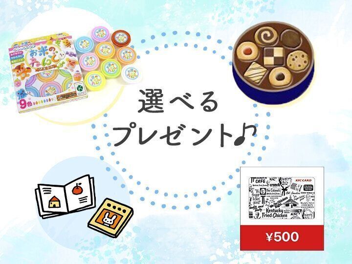 さらに!セミナーに参加後、アンケートに回答いただくと、ママに嬉しいデジタルKFC CARD(500円)や人気チョコレートなど、4つの中からお好きなものをプレゼント♪ 無理な勧誘や営業も一切ないので、気軽にセミナーに参加してみて!