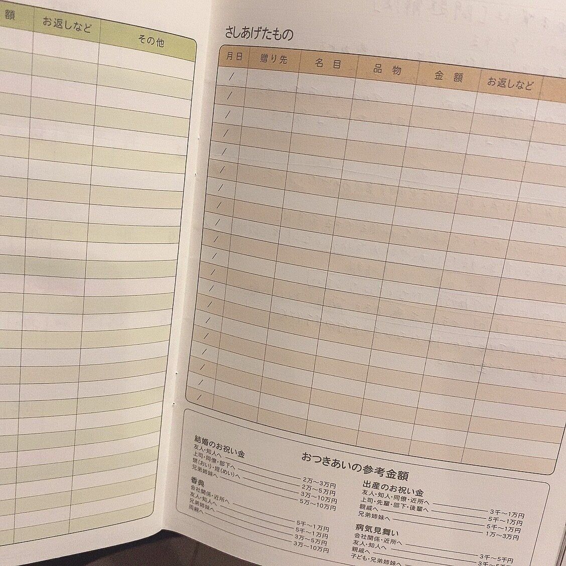 もうここ3、4年セリアの手帳を使っています。記入する部分が色分けされているので私の仕事の予定や夫の予定などを分けて書くことができるのと、もらったもの差し上げたものリストが付いているのがすごく便利です!