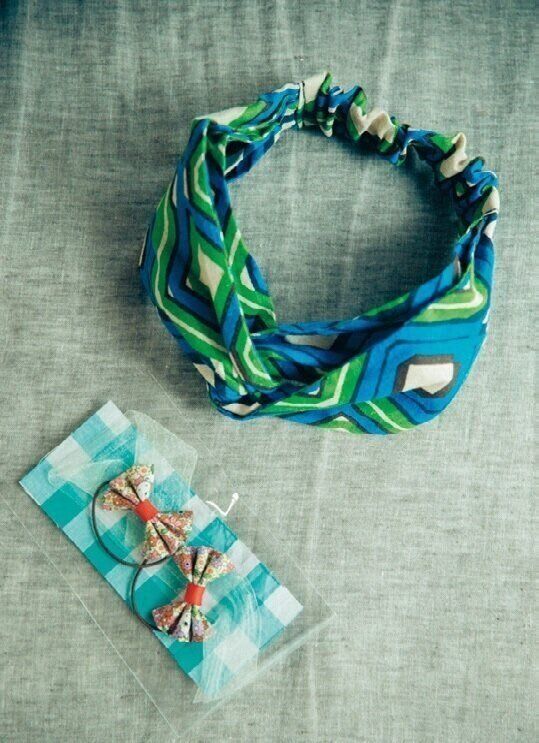 「お菓子セットより、手軽に使ってもらえる実用品をと思い、手作りのヘアゴムやヘアバンドを手土産にしています」。ラッピングすれば素敵な贈り物になります。