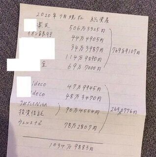 我が家は、月々の家計費や年間の特別費、資産の合計額を紙に控えいつでも夫婦で共有&見える化できるようにしています。