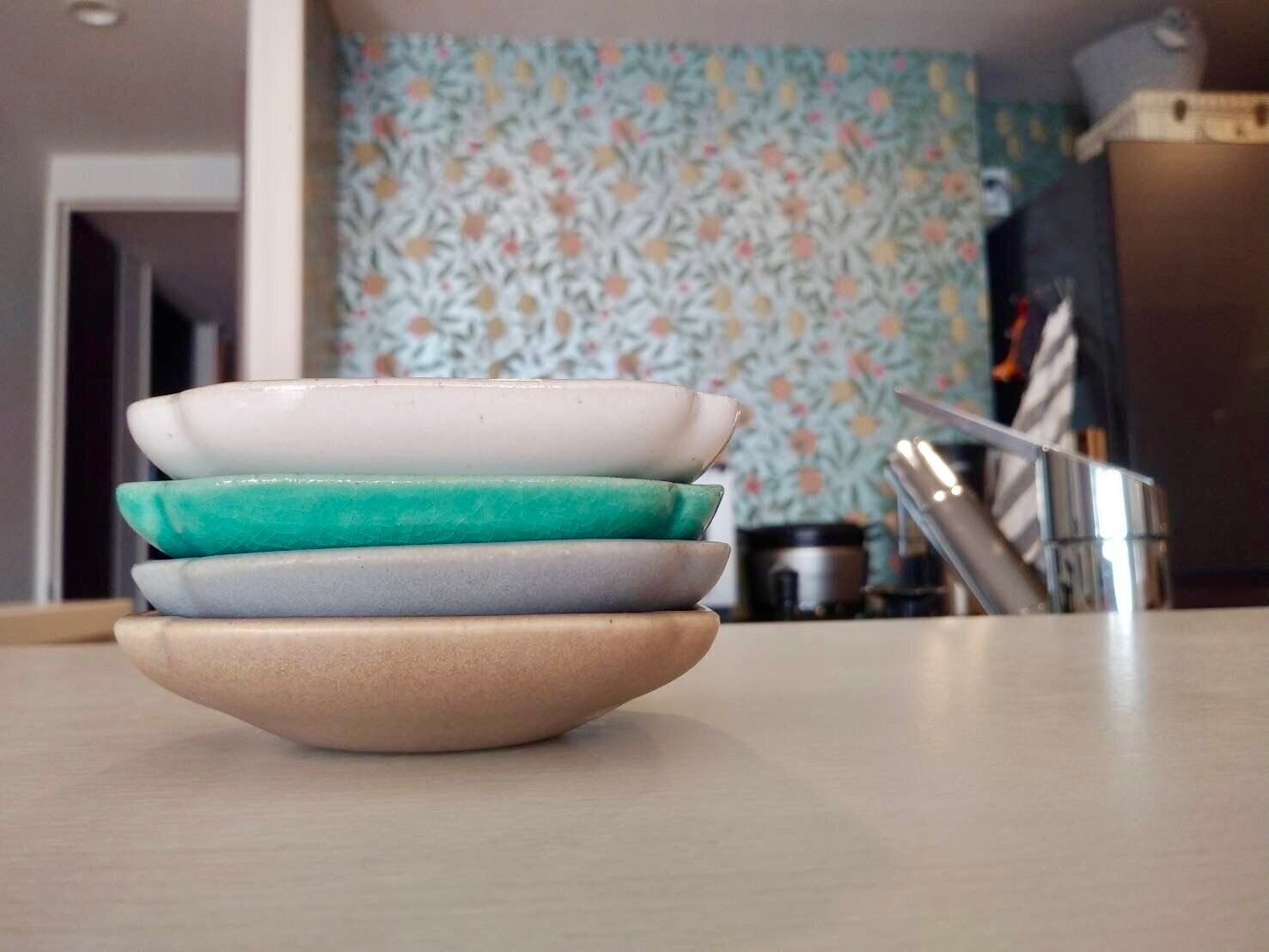 私が選んだのは兵庫県淡路市の返礼品となっているAwabi ware(あわびウェア)の豆皿4枚のセット。美しい色合いに惹かれて選びましたが、届いた後、手の馴染みやすさやポテっとした美しい縁取りのデザインにとても嬉しくなりました。