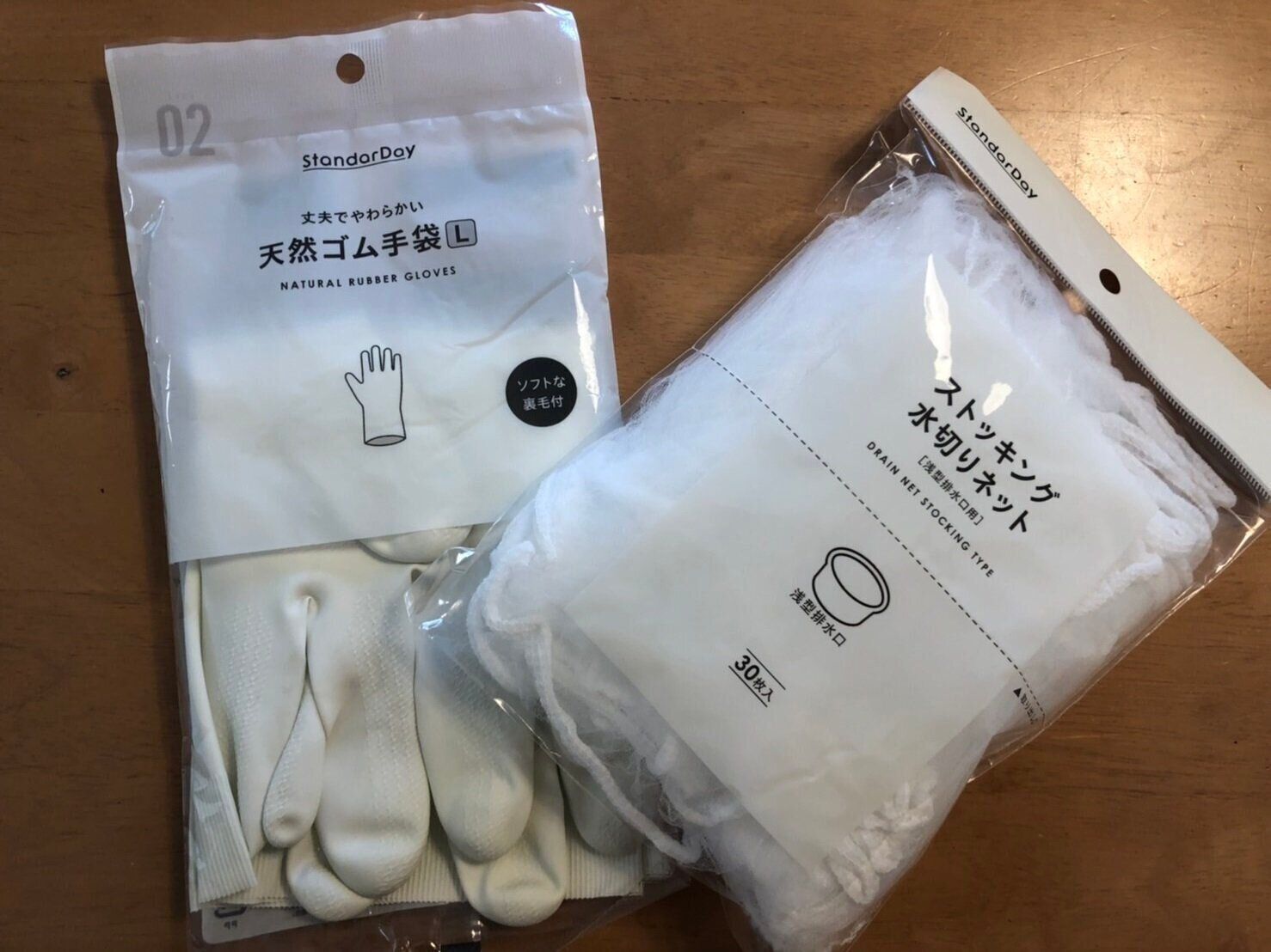 ゴム手袋&ストッキング水切りネットのパッケージ見てください。