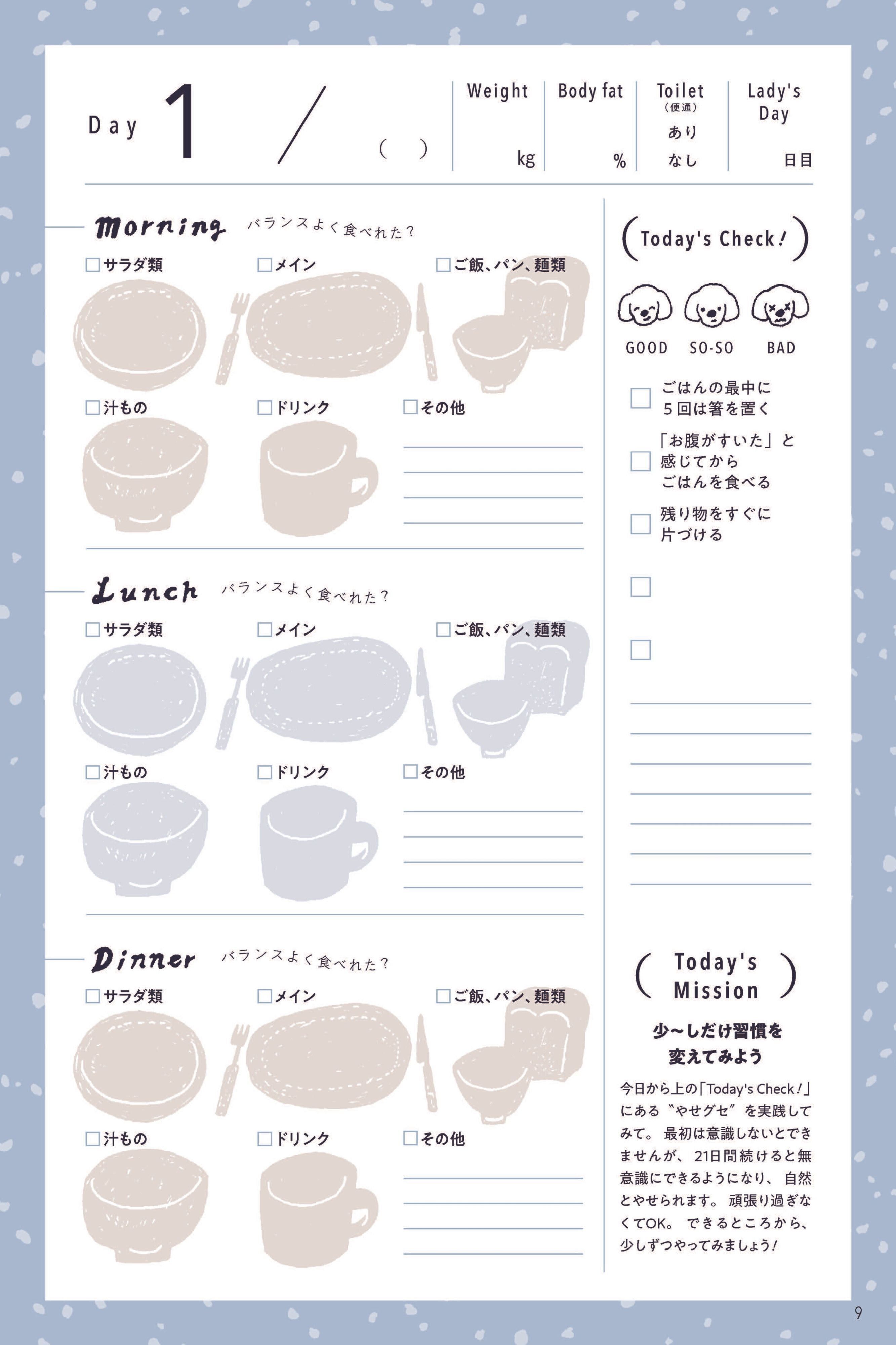 つまり、ダイエットノートに自分の記録をつけながら、書かれているミッションをやるだけで、21日間で“やせグセ”が身についちゃうというわけです!