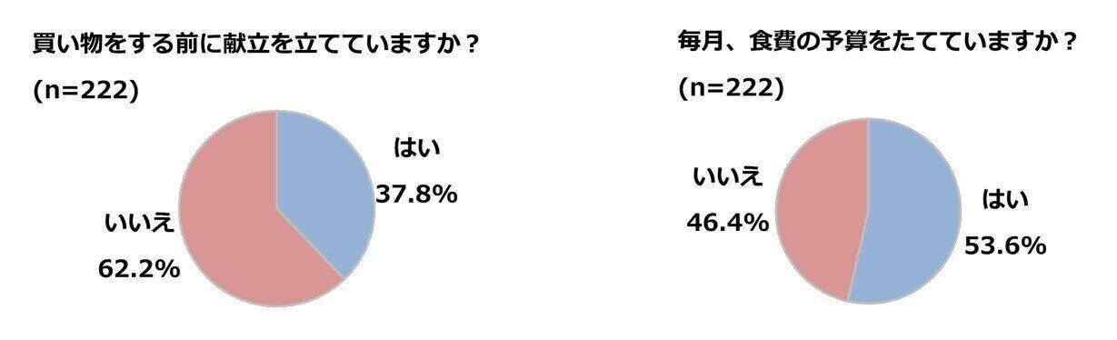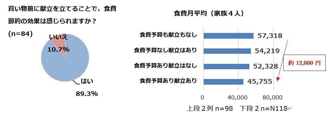 予算と献立をたてない家庭と比べると、その差は月約12000円(子ども2人の4人家族で算出)と大きな差がでている。調査では以下のような声も見られ、献立をたてる家庭が増えている理由と考えられる。