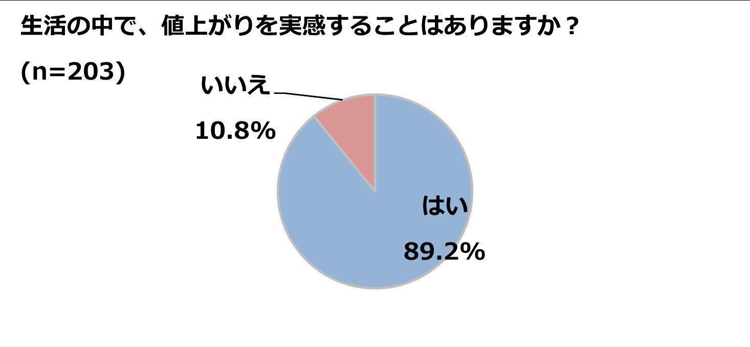 ●食費や水道光熱費など値上げを実感する家庭が約9割。