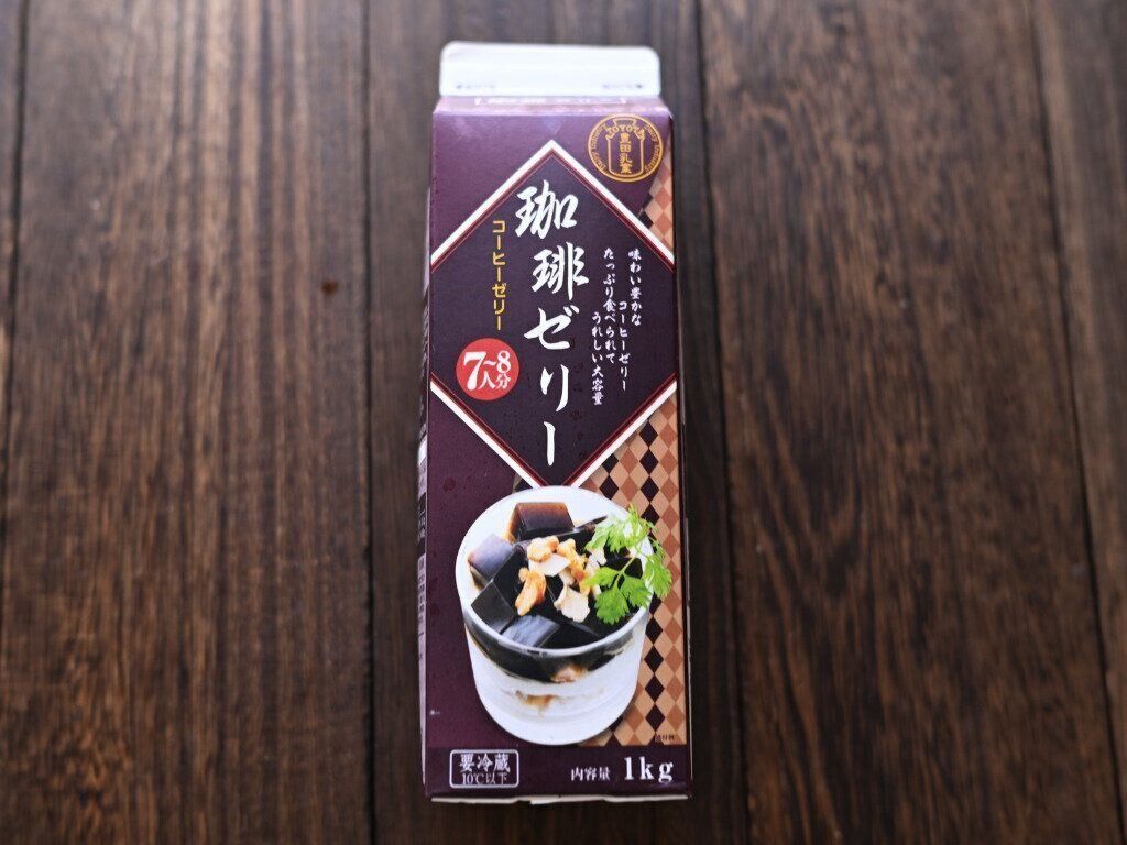 まずご紹介するのは、業務スーパーの「コーヒーゼリー」。なんと1kg入りで、コーヒーが好きな人にはピッタリ!ホイップクリームやバニラアイスをトッピングすると、カフェ気分を味わえますよ。細かくつぶして牛乳を入れたらコーヒーゼリードリンクもおすすめです。
