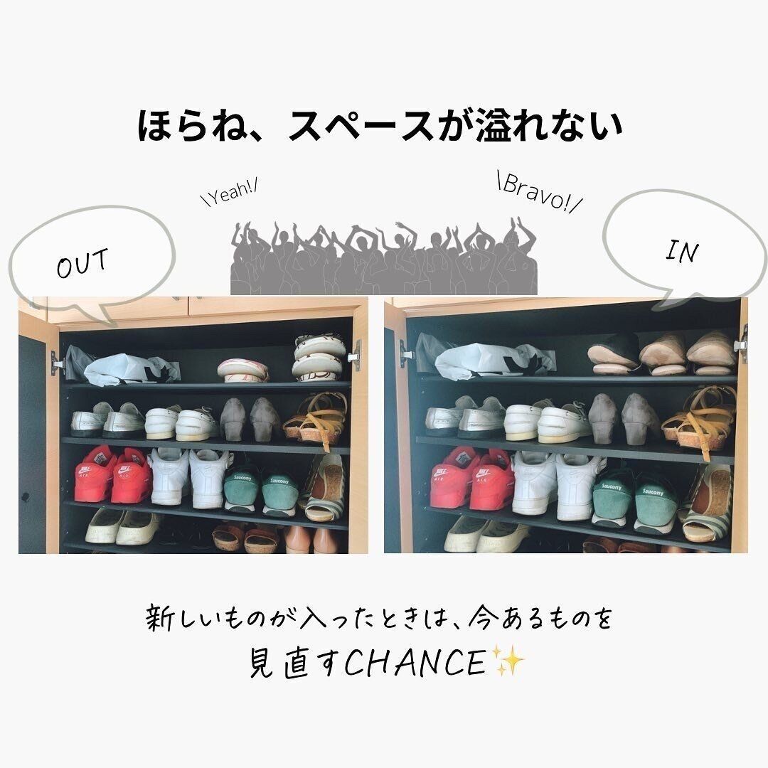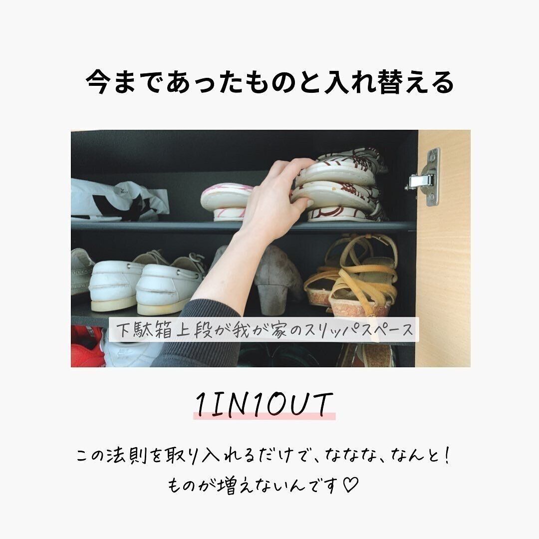 我が家では下駄箱最上段がスリッパスペース。来客も少ないので、スリッパは3つあれば大丈夫。なので新しくお迎えした分、古いものを手放すことに。