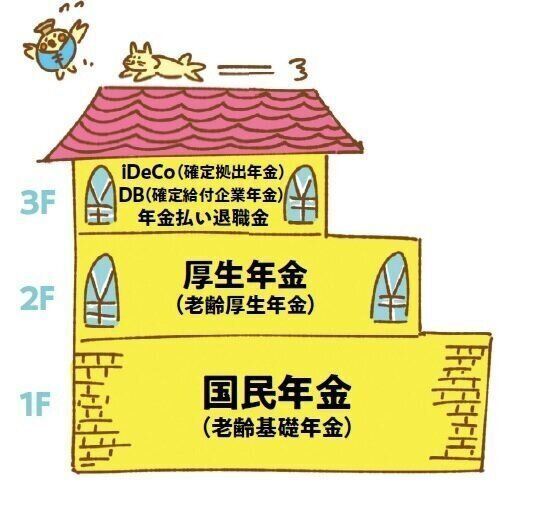 「年金は、20歳以上が加入する『国民年金』が1階。2階は会社員などの『厚生年金』で、2階までが生涯受け取れる公的年金。3階は『iDeCo』や『企業年金』など任意の上乗せです」。
