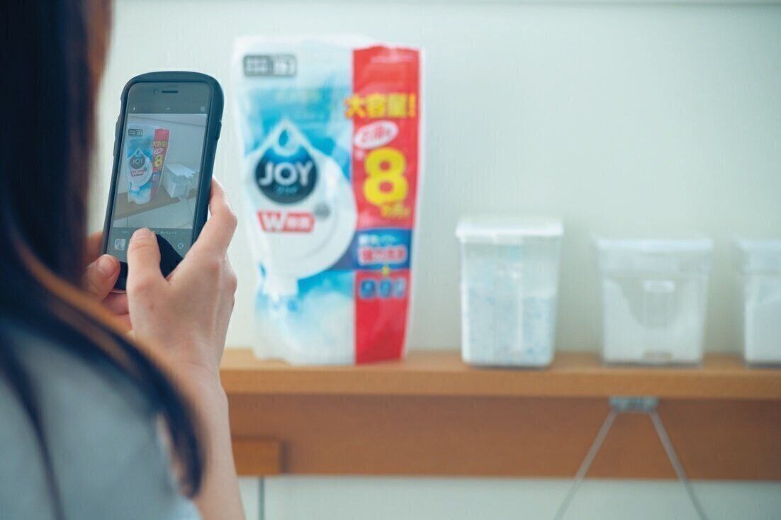 ストックが切れそうな日用品などは、気がついたときにすぐスマホでパッケージを撮影。「メモをするよりも写真を撮る方が簡単だし、詰め替え用の買い間違いがありません」。