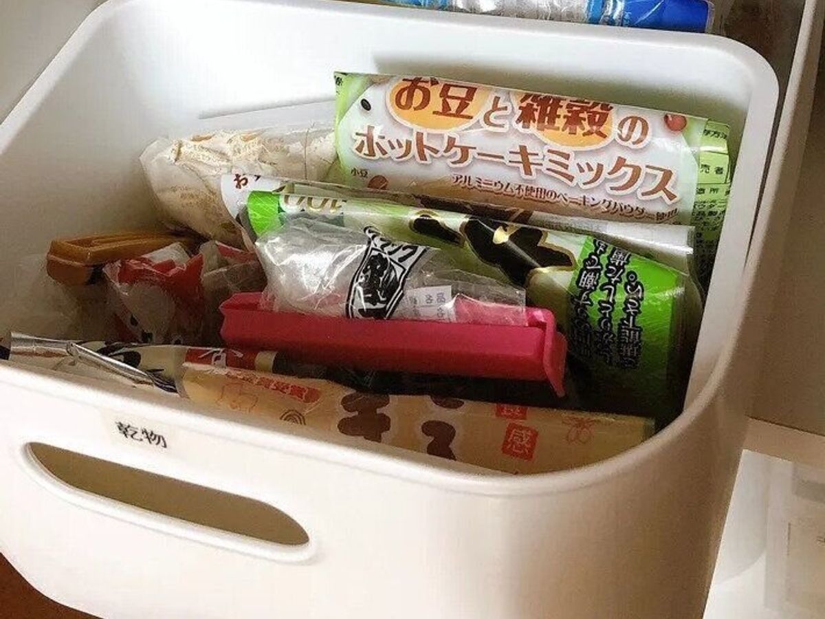 また乾物コーナーには早めに食べたいものを入れるボックスを置き、まずはここをのぞいてから調理を始めることを習慣化しているそう。