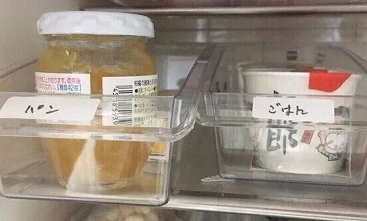 写真はおだけみよさんの冷蔵庫です。奥にあるものがわかりやすいようにトレイを活用しています。「パンを食べるときに使うもの」「ごはんのときに一緒に食べるもの」など、用途別にグループ化するとより管理がしやすくなりますね。