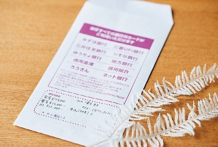 わが家は、銀行の封筒に支出額をメモ。