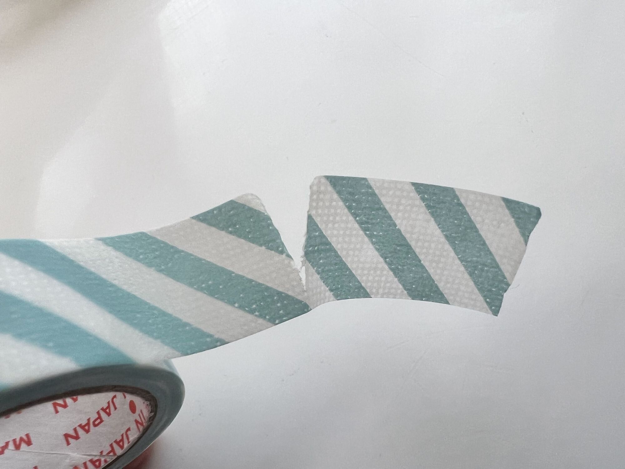 この商品、一般的なマスキングテープよりかなり厚めでしっかりしたつくりになっています。しかも、わざわざハサミを使わなくても手で簡単にきれいに切れます! 紙のマスキングテープのようにギザギザにはならず、まっすぐにカットできるのは気持ちがいいです。