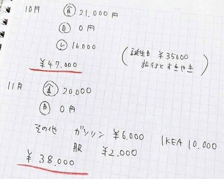 生活費はほぼカード払い。「マネーフォワード」アプリに入力し、月1回、ノートに固定費以外の合計額をメモ。「書くことでお金を使ったことが意識でき、ムダ使い予防に」。