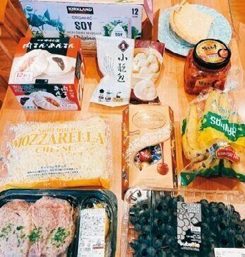 月1回はコストコへ出かけてテンションアップ!「大量パックの肉や野菜以外に、パンやスイーツなどのお楽しみ品もまとめ買いして、2週間乗り切ります」。