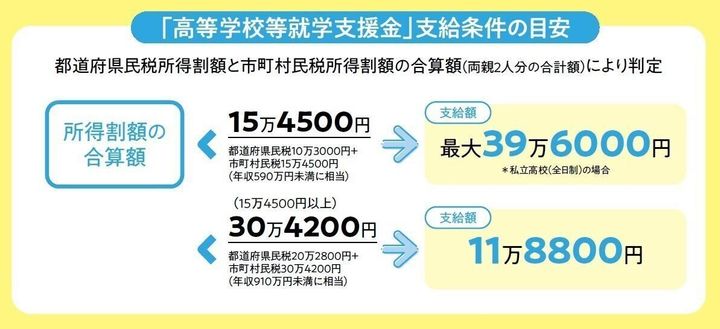 A 私立高でも授業料支援の対象に。ただし、世帯年収910万円以上だと自腹になる可能性もあります