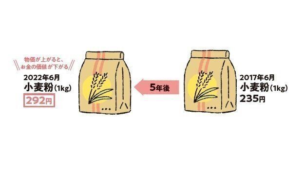 コロナ禍などの影響で、さまざまな物の値上がりが気になる今。「現況に限らず、10年前、20年前と比べても物価は少しずつ上昇しています。現在100円で買える物が10年後も100円で買えるとは限りません。現金(預貯金)を寝かせておくだけだと資産価値がどんどん目減りしていくことに。一方、投資で購入する債券や株は物価と連動するので、資産価値が下がる可能性は低くなります」。