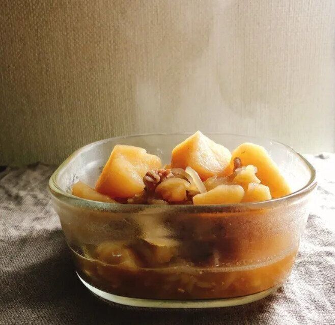 そのコツのひとつが、「見栄えは気にしないということ」。写真は、よしかわりなさんのお宅の肉じゃが。実家の肉じゃがは、インゲンなどで彩りを足していたと言いますが、その彩りを足すために食材を買うのであれば、その分、他の食材を買いたいと思うようになり、あまり見栄えを意識しなくなりました。